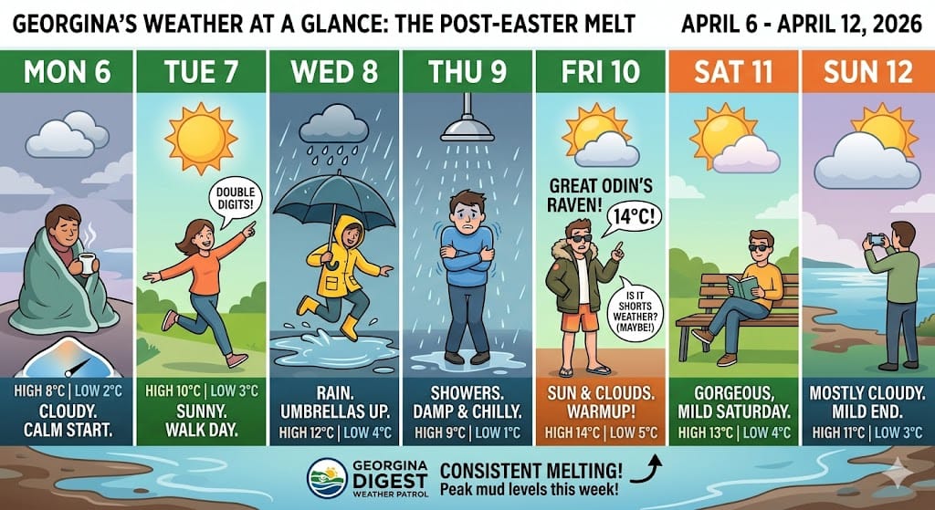 Good morning and welcome to the great post-Easter candy hangover! If you are currently vibrating at a frequency that can shatter glass because you ate your body weight in leftover chocolate bunnies yesterday... you are not alone! Put down the Cadbury Creme Eggs, splash some cold water on your face, and let's get after it. Spring is aggressively asserting itself, the mud is absolutely glorious, and we have a jam-packed week of highly accurate, brand-new local updates to keep you in the loop. Stay classy, Georgina!